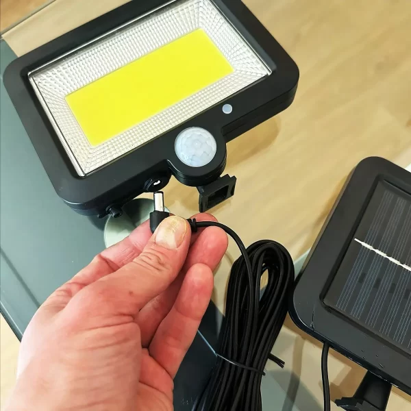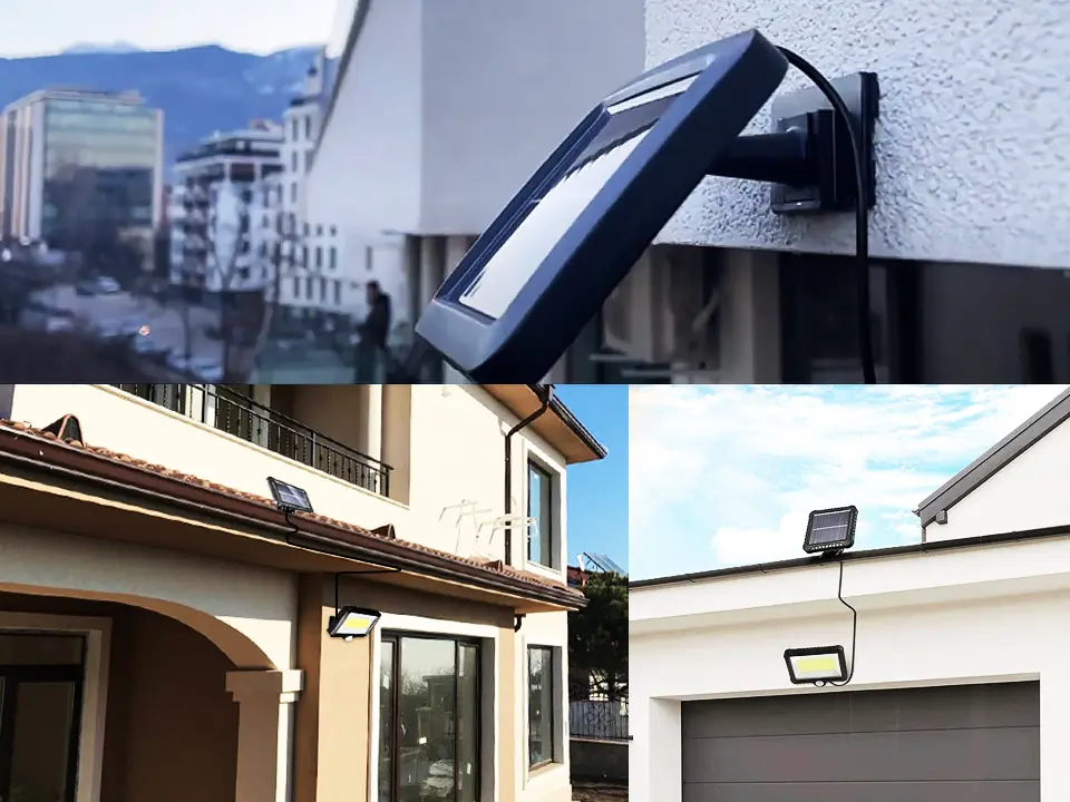 O design split dá-te uma vantagem real: painel e lâmpada não têm de ficar no mesmo ponto. Põe o painel onde há mais sol — fachada sul, mais alto e sem sombra — para carregar ao máximo. A lâmpada fica onde faz falta: entrada, caminho, quintal, garagem